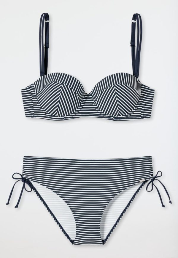 - dunkelblauer, gestreifter Bandeau Bügel-Bikini für Damen