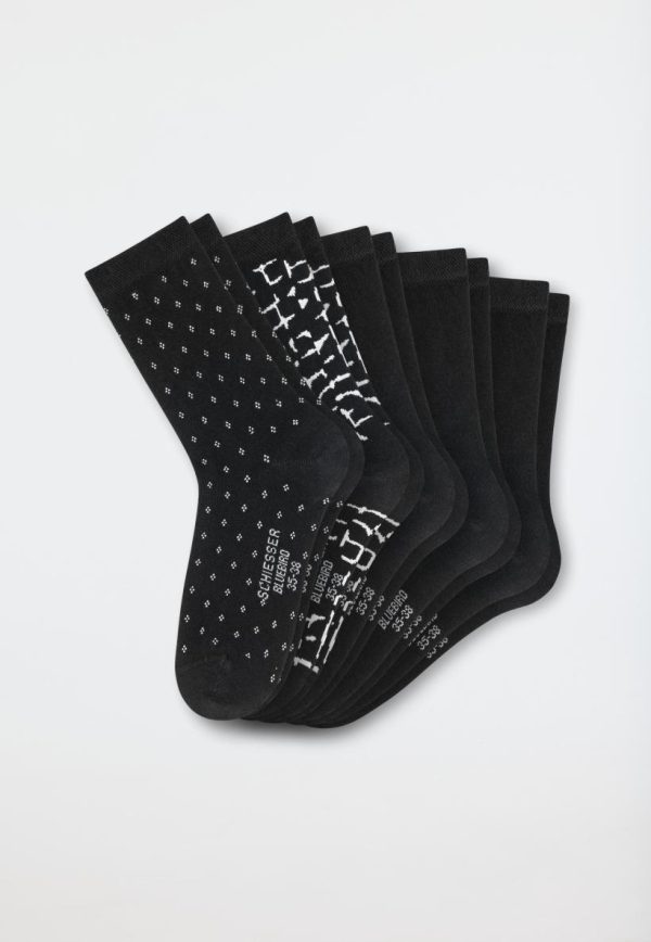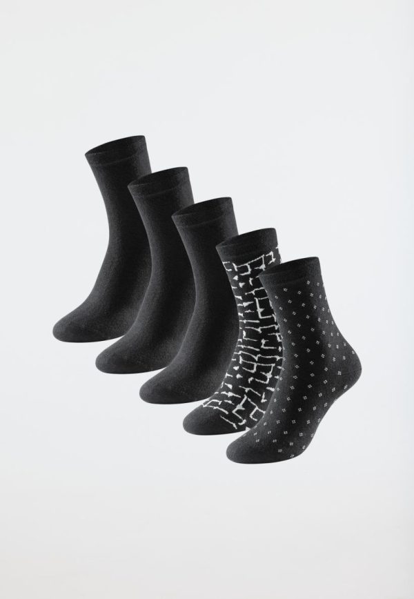 - schwarze Socken für Damen im preisstarken 5er-Pack: 3x unifarben, 2x weiß gemustert