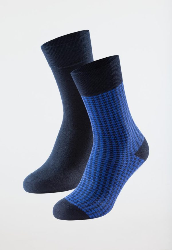 - Socken für Herren im Doppelpack, 1x uni in Nachtblau 1x Royalblau-Nachtblau gemustert