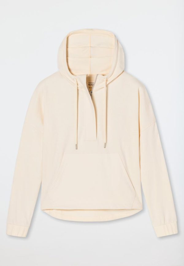 Stylish und wunderbar weich: Dieser wunderschöne Damen-Hoodie hat das Zeug zum neuen Lieblingsshirt! Mit seiner angesagten Oversized-Silhouette sieht er einfach gut aus. Dazu passen die überschnittenen Schultern und die lässige Fronttasche. Den besonderen Look unterstreicht auch die Kapuze mit Zipper am Ausschnitt. Das Material wird Sie begeistern: Elastische Sweatware aus natürlichem, atmungsaktivem Lyocell und Baumwolle schmeichelt der Haut. Mix+Relax-Loungewear in bester SCHIESSER-Qualität!