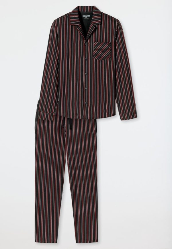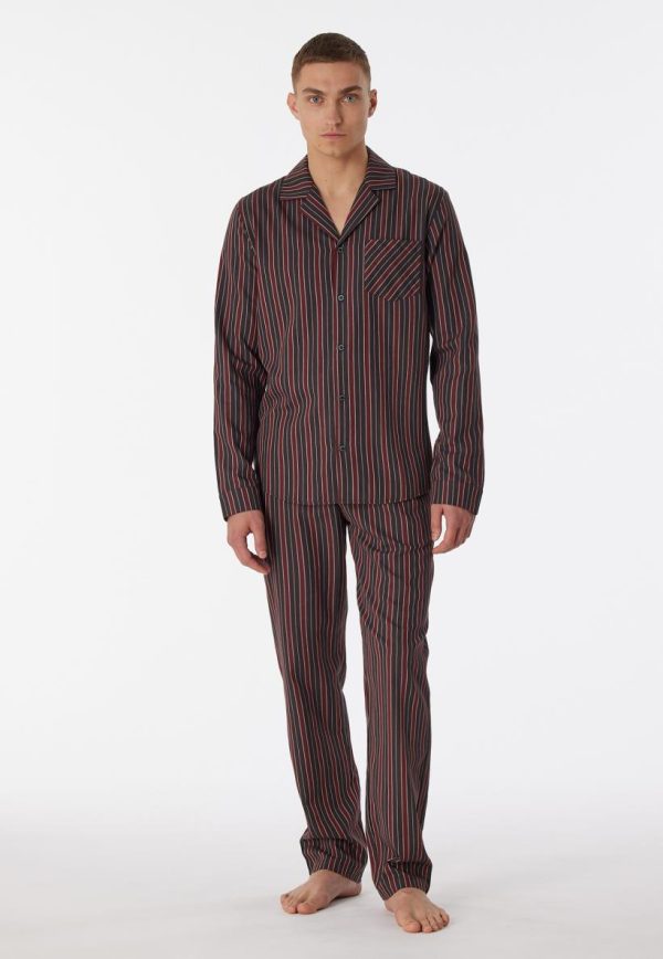 Pyjama Lang Webware Organic Cotton Knopfleiste Streifen Anthrazit Selected! Premium Anthrazit | Herren SCHIESSER Schlafanzüge