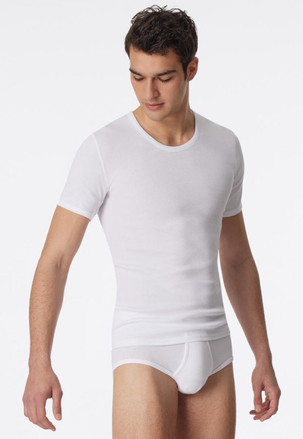Basics in bester Qualität: Dieses weiße Herren-T-Shirt überzeugt durch einen puren Look und einen hohen Tragekomfort. 100% supergekämmte Baumwolle in Doppelripp-Qualität schenkt dem Rundhals-Shirt einen maskulinen Charakter, der kernig wirkt und gleichzeitig ein weiches, angenehmes Hautgefühl garantiert. Ein besonders bequemes Shirt für Herren, die strapazierfähige, langlebige Produkte in gewohnt bester SCHIESSER-Qualität schätzen!