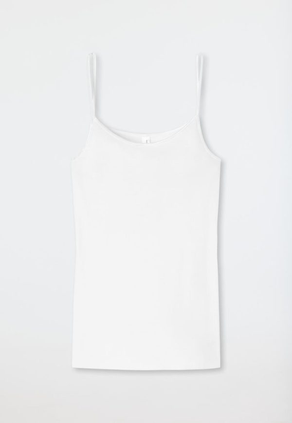 Luxuriöse Basics: Dieses weiße Spaghetti-Top aus der SCHIESSER-Serie „Luxury“ verwöhnt anspruchsvolle Damen mit herrlich softem Material im femininen Look. Seidig schimmernde Träger schenken dem Unterhemd einen ganz besonderen Charakter, der in 100% supergekämmter Mako-Baumwolle sowie mit extraflachen Saumlos-Abschlüssen sanft und außergewöhnlich leicht auf der Haut spürbar wird. Ein besonders feines Top in erstklassiger SCHIESSER-Qualität.