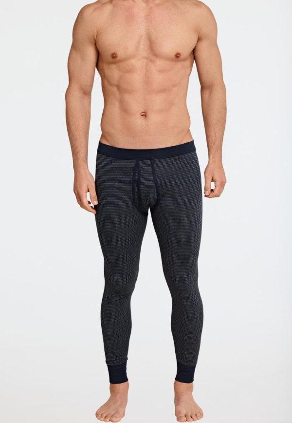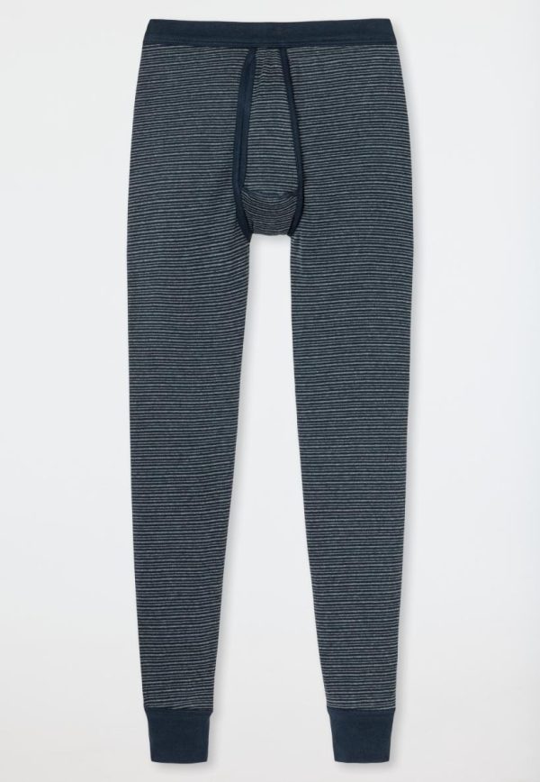 Diese lange, dunkelblau geringelte Herrenunterhose aus der „Feinripp melange“ -Serie kombiniert ein besonders hautfreundliches Material mit einem klassischen Design. Hochwertiger Feinripp aus 100% natürlicher Baumwolle sorgt dabei für angenehm weiches Gefühl auf der Haut und bietet gleichzeitig ein optimales Feuchtigkeitsmanagement. Im Zusammenspiel mit dem soften Bund und dem praktischen Eingriff wird die lange Unterhose zum komfortablen Wäschestück bei kühleren Temperaturen.